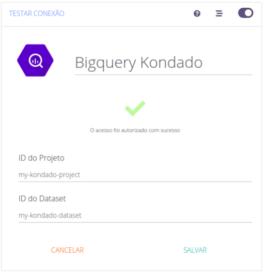Agora basta salvar o conector e começar a integrar os seus dados do BigQuery no Data Lake ou Data Warehouse.