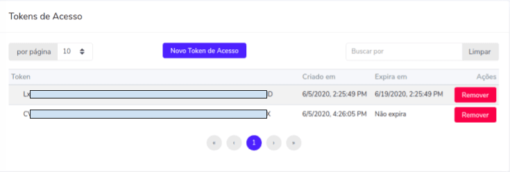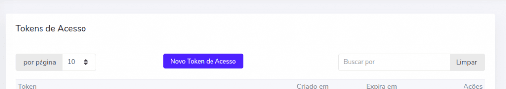 2) Na página de tokens, clique no botão de "Novo Token de Acesso"