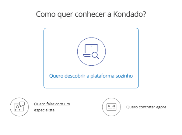 - Na janela: “Como quer conhecer a Kondado?” selecione a opção “Quero descobrir a plataforma sozinho”.