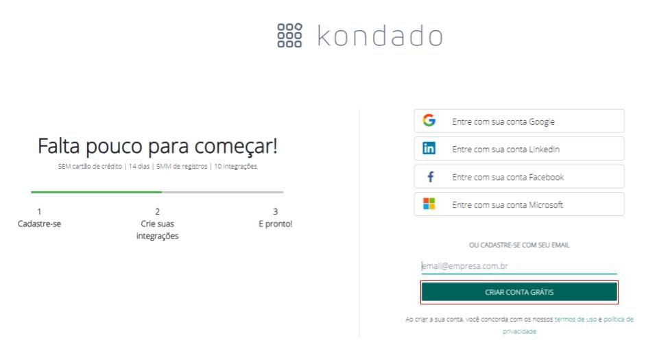 - Selecione a opção de Login desejada e clique em “Criar conta grátis”.