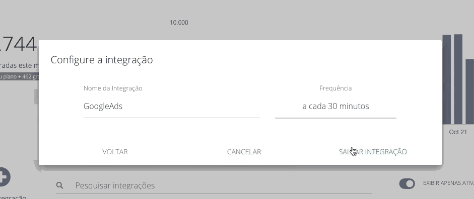 10. Por fim, dê um nome para a sua integração e defina a frequência com a qual ela será executada: