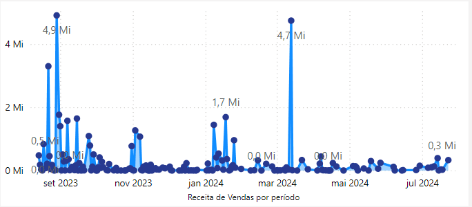 Gráfico Receita de Pedidos por período:Representação visual que exibe a evolução da receita da empresa ao longo do tempo.