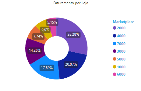 Gráfico Faturamento por Loja: Representação visual que mostra o percentual de vendas por Loja.