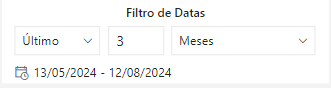 Filtro de Intervalo de datas: Este é o filtro onde será possível personalizar a visualização dos dados, baseado no período escolhido.