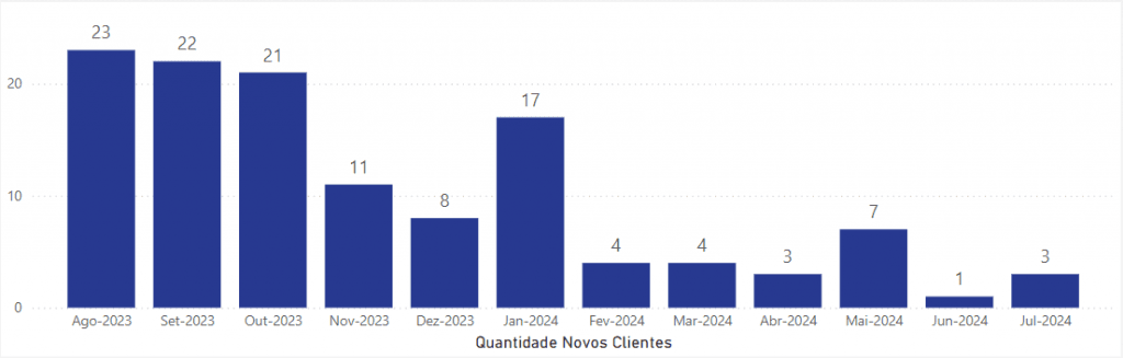 Gráfico novos clientes: Gráfico que representa mensalmente a quantidade de novos clientes, de acordo com o período filtrado.