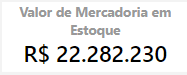 Valor de mercadoria em estoque: Campo que apresenta a informação de quanto está investido financeiramente em estoque físico, ou seja, o produto entre a quantidade de itens em estoque físico (coluna: “saldofisicototal” da aba:“bling_produtos_estoque”) e o preço de custo destes itens (coluna: “precocusto” da aba:“bling_produtos_fornecedor”)
