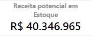Receita potencial em estoque: Campo que apresenta a informação de qual é a possível receita proveniente da venda dos produtos em estoque físico, considerando valor de venda cadastrado. Trata-se do produto entre a quantidade de itens em estoque (coluna: “saldofisicototal” da aba:“bling_produtos_estoque”) e preço de venda destes itens (coluna: “itens_valor” da aba:“bling_pedidos_venda_detalhes_itens_cat”)