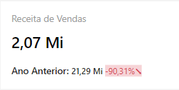 - Obs: Além de apresentar o valor da receita total, há um comparativo (percentual e quantitativo) com o período anterior ao selecionado.