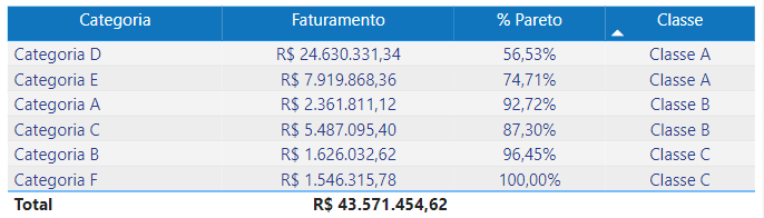 Tabela Curva ABC: Tabela que apresenta as informações de curva ABC por produto e categoria, ou seja, quanto representa percentualmente o faturamento em vendas de cada. Além disso, é informada a quantidade de itens vendidos e sua respectiva receita. Todas as informações variam de acordo com o período selecionado.