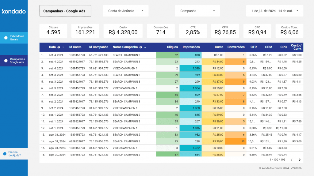 🎥 Dashboard Google Ads no Looker Studio criado pela Kondado