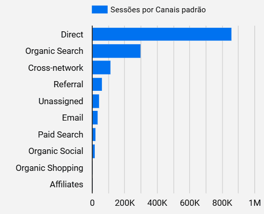 Filtro Grupo de Canais Padrão da Sessão: Filtro das sessões agrupadas por Grupo de Canais Padrão para entender a performance de cada canal.