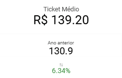 - Obs: Trata-se da divisão entre "totalrevenue" e "transactions" pro período selecionado. Além de apresentar o valor do Ticket Médio, há um comparativo (percentual e quantitativo) com o mesmo período no ano anterior ao selecionado.