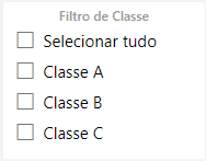 Filtro de Classe: Filtro que pode ser utilizado para mostrar apenas uma das classes de produto, A, B ou C.