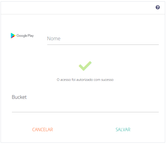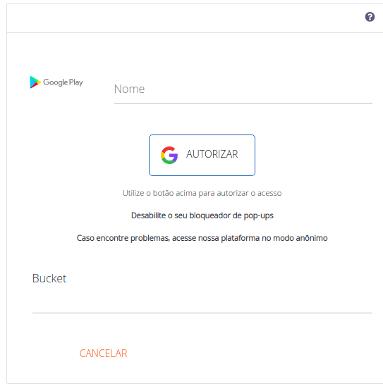 ATENÇÃO: Certifique-se que você selecionou a conta do google com acesso ao console do google play e acesso ao bucket do Google Cloud Storage copiado no passo 3