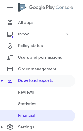 2) Uma vez logado, vá para a sessão de "Download reports" no menu à esquerda e selecione qualquer categoria de relatórios