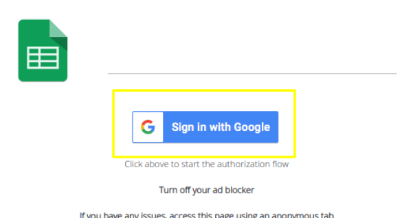2. Na página do destino, aperte no botão azul "Sign in with Google"