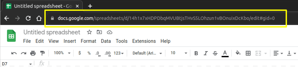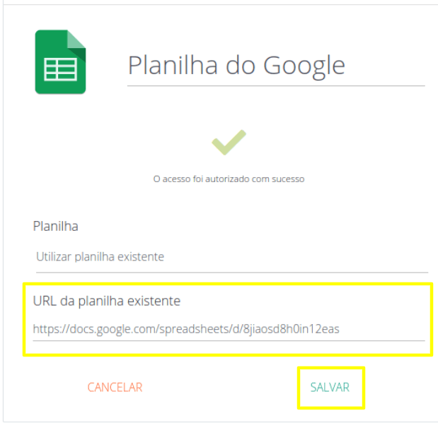 - Na parte inferior, caso escolha por utilizar uma planilha existente, preencha a URL da planilha. A URL da planilha fica na barra de endereços do seu navegador quando você acessa a planilha que irá utilizar (veja imagem abaixo)