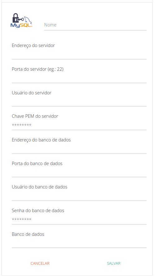 - Chave PEM do servidor: O texto do arquivo com a chave PEM para acesso ao servidor intermediário
