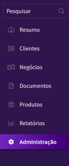 1) Acesse o site e faça login em sua conta Ploomes e, no painel lateral direito acesse Administração