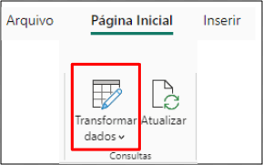 - No Power BI Desktop, vá para a aba Página Inicial e clique em Transformar dados.