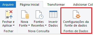- Agora, clique em Configurações da fonte de dados no menu Página Inicial.