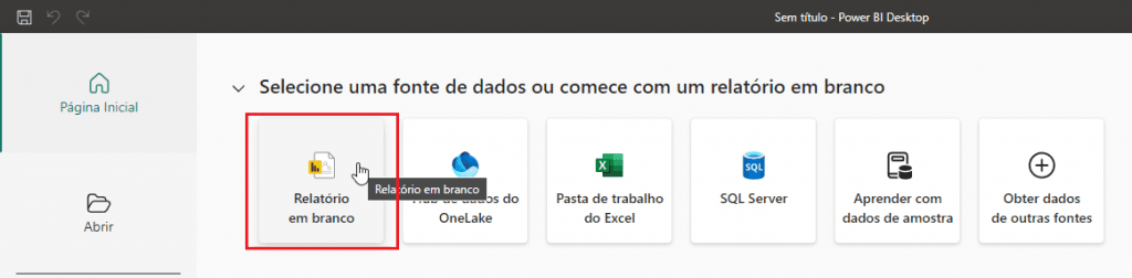 1. Abra o Power BI e clique em Relatório em Branco
