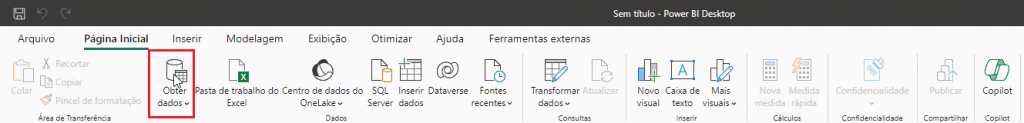 2. Na aba Página Inicial, clique na opção Obter dados