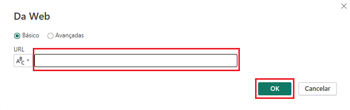 4. Agora você precisará inserir a URL dos seus dados e clicar em OK.