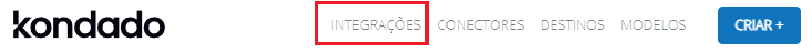 - Após realizar o tutorial inicial da Kondado, você já terá criado seu destino, conector e integrações. Portanto, no site da Kondado, clique no menu Integrações.