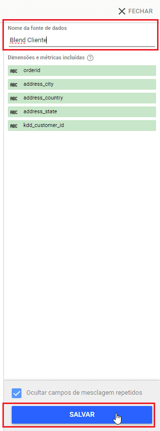 10 - Em “nome da fonte de dados”” dê um nome que identifique o blend, em seguida clique em salvar.