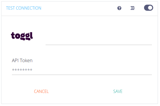 2) Faça login na plataforma da Kondado, clique para criar um novo conector Toggl e cole em "API Token" o valor obtido no passo 1