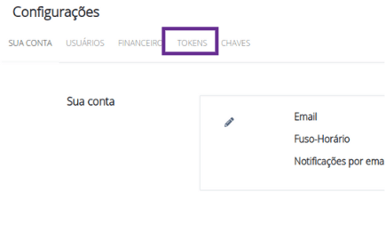 2) Na página de configurações, localize a seção “Tokens”: