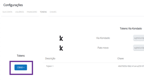 4) Para criar novos tokens, clique em"CRIAR +":