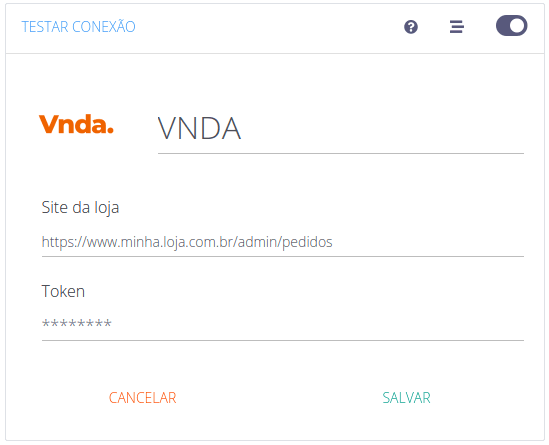 6) No conector, em "Nome" dê um nome para o seu conector e, em Site da loja preencha a URL que você utiliza para acessar a área administrativa do seu site e em Token cole o valor obtido no passo (4)