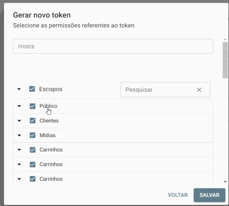 3.1) Recomendamos que marque todos os escopos e deixe o campo "Hosts" em branco